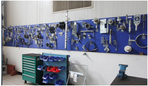 我國航空工業(yè)106所承擔(dān)著機(jī)載、彈載、艦載、車輛、地面雷達(dá)站等電磁窗產(chǎn)品設(shè)計(jì)、試驗(yàn)、測(cè)試、批生產(chǎn)及維修任務(wù),對(duì)車間管理要求比較嚴(yán)格。以前按照豐田5S管理的方法。如下圖車間有序管理工具及配件。